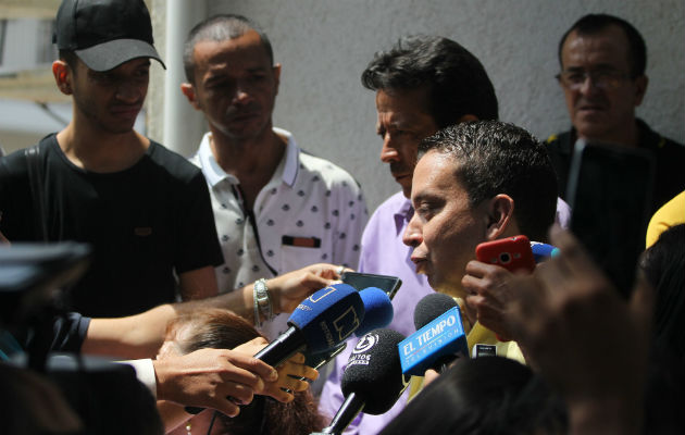 Fabian Gómez, familiar de colombianos muertos en un accidente de tránsito en Ecuador habla con la prensa. FOTO/EFE