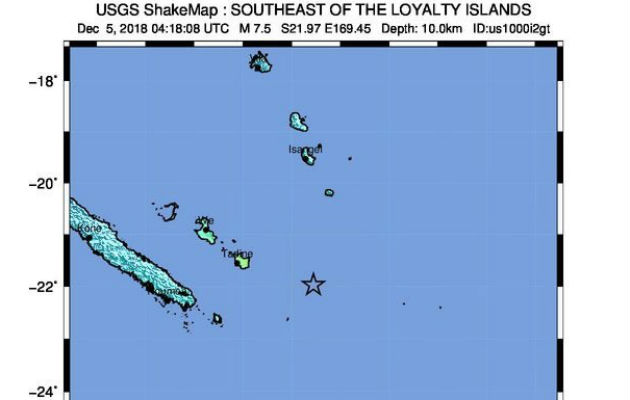 Un terremoto de magnitud 7,5 sacudió hoy el sureste de las Islas de la Lealtad, un archipiélago del territorio francés de Nueva Caledonia, en el Pacífico Sur, con posibilidad de tsunami en un radio de 1000 kilómetros alrededor del epicentro.