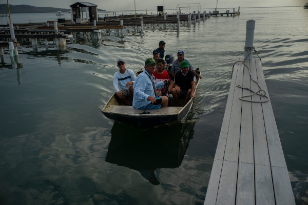 Un grupo de personas saca sus botes de los embarcaderos para ponerse a salvo ante la llegada de Dorian. FOTO/AP