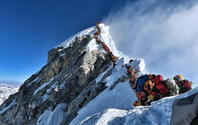 En 2012, se produjo una situación similar cuando 260 montañeros trataron de hacer cumbre en un mismo día aprovechando el buen tiempo, lo que causó una acumulación de gente en el famoso escalón Hillary, una roca vertical de 12 metros que supone el último gran obstáculo antes del techo del mundo.