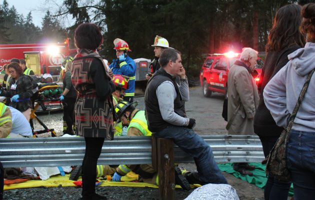 Horas después del accidente, la Patrulla (Policía) Estatal de Washington informó de al menos tres muertos entre las 77 personas, entre las enviadas a hospitales para ser atendidas, según el rotativo Seattle Times, que citó fuentes de los servicios sanitarios.