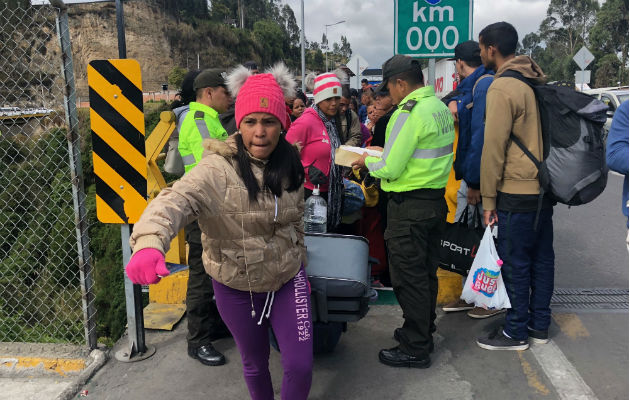 Venezolanos entrando a Ecuador en ruta hacia Perú.