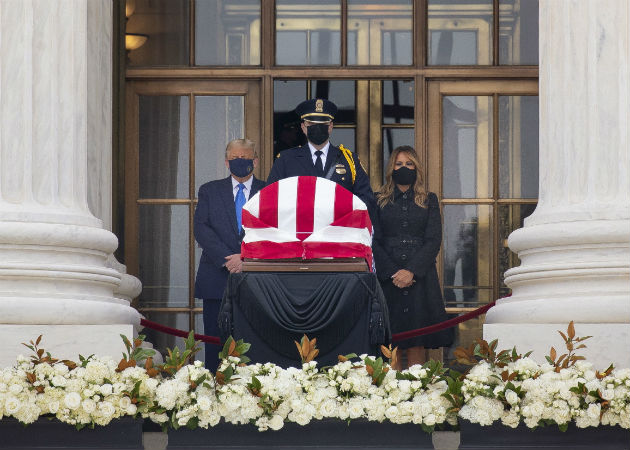 Trump y su esposa Melania hicieron una fugaz visita a la sede del máximo tribunal, en cuya escalinata principal se encuentra desde este miércoles el féretro de la célebre jueza, todo un icono del movimiento feminista en Estados Unidos.