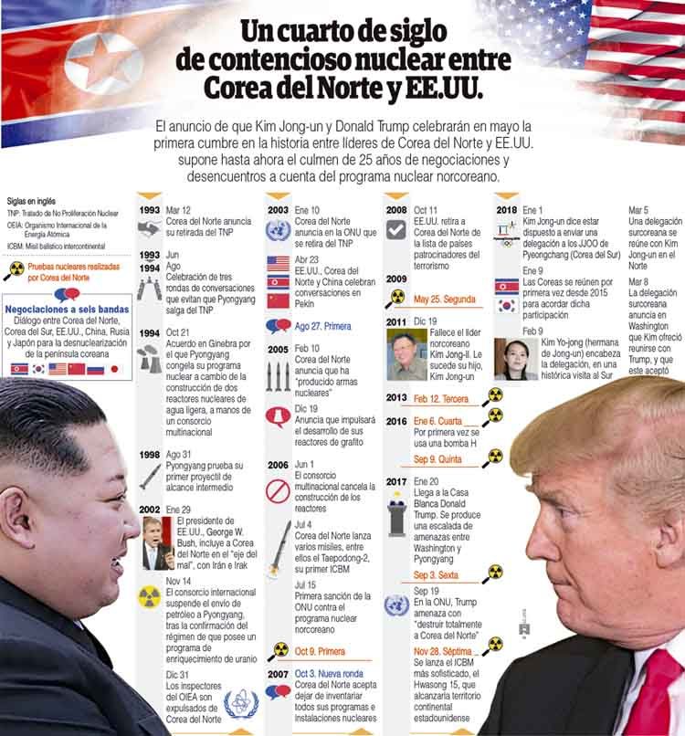 La portavoz de la Casa Blanca no quiso confirmar tampoco ninguna "fecha ni lugar" para la reunión entre Trump y Kim, después de que el Gobierno surcoreano anunciara que los dos líderes se reunirán antes de finales de mayo.