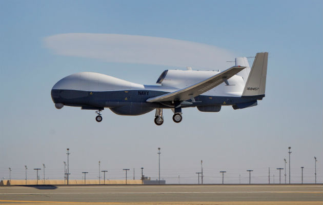 Vista de un dron MQ-4C de la Fuerza Aérea de EE.UU. Foto: EFE.