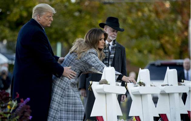 Trump y Melania visitan entre protestas la escena del tiroteo de Pittsburgh