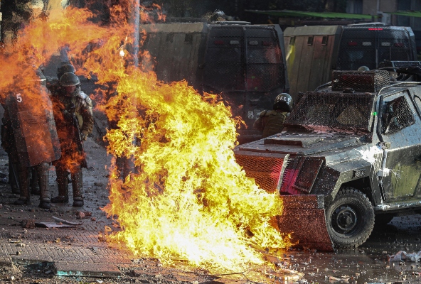Según el general Enrique Monrás, unos 340 carabineros resultaron heridos y fueron atacadas 19 comisarías policiales el martes y la madrugada de este miércoles. FOTO/AP