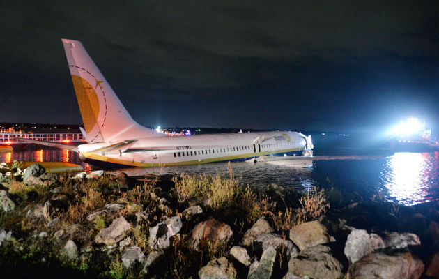El aparato, un Boeing 737, procedente de la estación naval de la Bahía de Guantánamo, Cuba, iba a aterrizar cuando se salió de la pista y se precipitó en las aguas del río sin sumergirse.