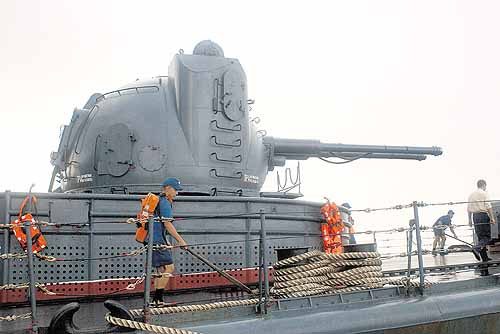 El buque también dispone de ocho cohetes antiaéreos y dos cañones de 130 milímetros que tienen un alcance de 25 kilómetros, que pueden bombardear posiciones en tierra desde la costa.