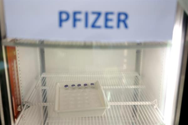 Dosis de la vacuna de Pfizer en un refrigerador.