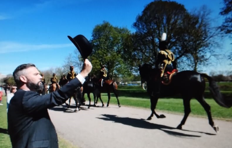 Un hombre rinde homenaje al paso del féretro del duque de Edimburgo, en Windsor (Reino Unido). Foto: EFE.