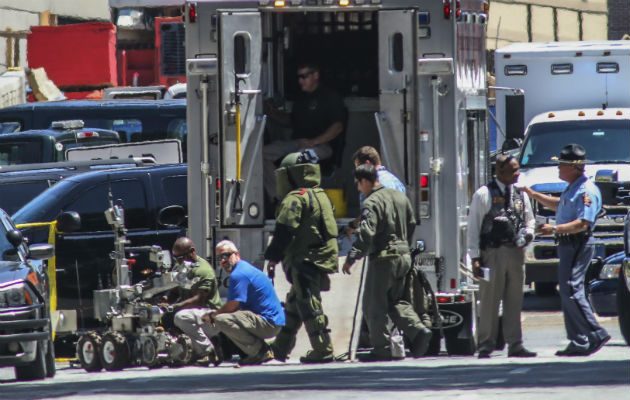 Las autoridades mantenían bloqueadas varias calles aledañas y han evacuado varios edificios para descartar que haya más explosivos, luego de que encontraran un mensaje en el parabrisas del automóvil del veterano en el que pide que llamen a un número de teléfono.