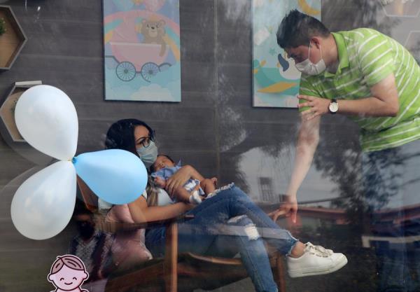 Separadas por el acrílico de una cabina desinfectada y climatizada en la parte trasera de una camioneta, familias como la Gutiérrez Ávila, en la ciudad de Monterrey, en el norte de México, cumplen su deseo de conocer a un nuevo integrante en medio de la pandemia de COVID-19.