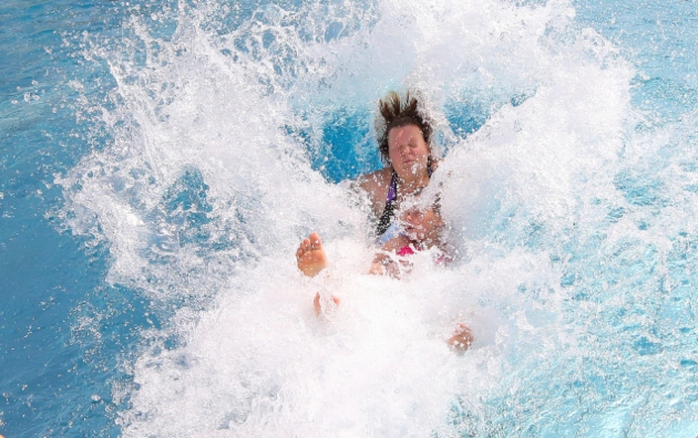 En Alemania una madre y su hija se lanzan a una piscina para refrescarse ante la intensa ola de calor. FOTO/AP