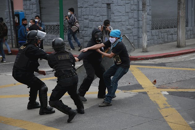 Los incidentes se registraron en el marco de una masiva convocatoria para manifestarse este sábado en contra de Giammattei y el Congreso guatemalteco tras la aprobación el pasado miércoles del presupuesto del Estado para 2021.