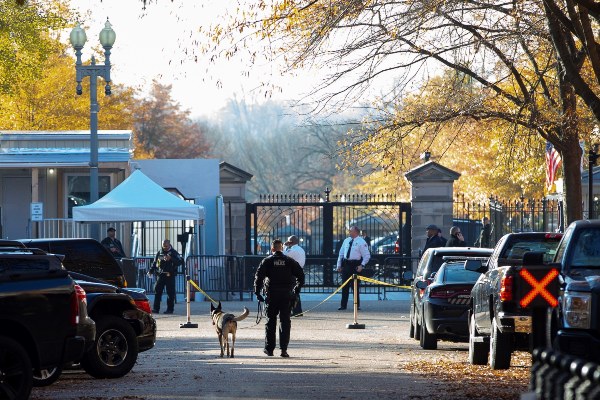 Los miembros de la División Uniformada del Servicio Secreto de EE. UU. Caminan fuera de la entrada noroeste de la Casa Blanca, ya que el complejo tiene la orden de refugiarse en el lugar luego de una supuesta violación del espacio aéreo en Washington, DC.