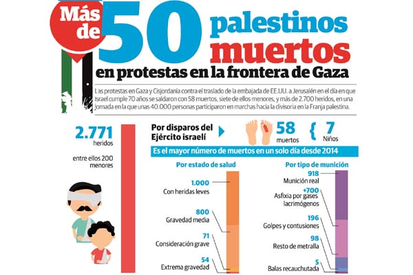 El traslado de la Embajada de Estados Unidos, en Jerusalén, causó caos y violencia en Gaza y Cisjordania en uno de los eventos más sangrientos que se han generado en el área desde el 2014.