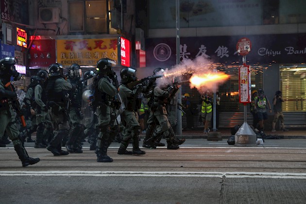 Violentos enfrentamientos entre fuerzas antidisturbios y grupos de manifestantes se registraron hoy en varias zonas de Hong Kong, así como múltiples destrozos en el mobiliario urbano y en algunos organismos, como la sede en la ciudad de la agencia estatal de noticias china Xinhua.