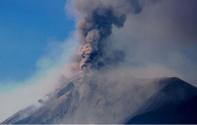 El Instituto Nacional de Sismología, Vulcanología, Meteorología e Hidrología (Insivumej), dijo que el coloso expulsa una gruesa columna de ceniza a unos 4.800 metros de altura que se dispersa a unos 20 kilómetros al oeste y suroeste del cono volcánico.