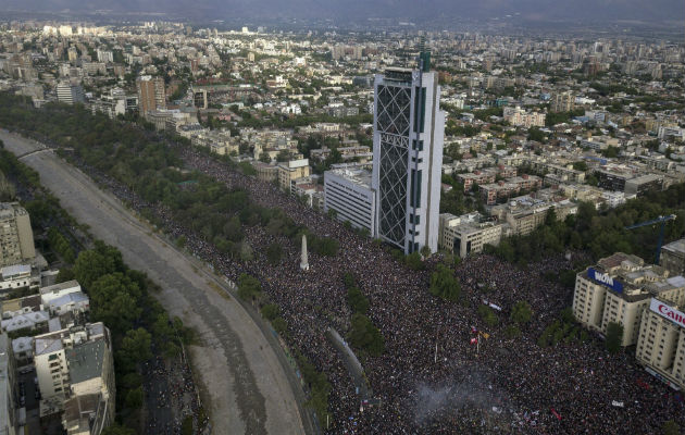 La manifestación más grande de Chile desde que cayó en 1990 el dictador Augusto Pinochet reunió este viernes en Santiago a al menos un millón de personas cuando se cumple una semana de las protestas contra la desigualdad social en el país y que ya deja 19 muertos.