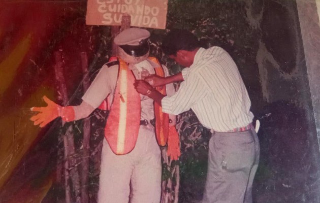 Su primer muñeco de Año Viejo fue un policía de tránsito, donde usó un uniforme viejo de él, una chaqueta y guantes. Le amarró una de las manos a una penca de una palma pequeña, para que la brisa moviera la mano. Llamó tanto la atención que en esa época cinco carros chocaron cerca del muñeco, sin graves consecuencias, afortunadamente.
