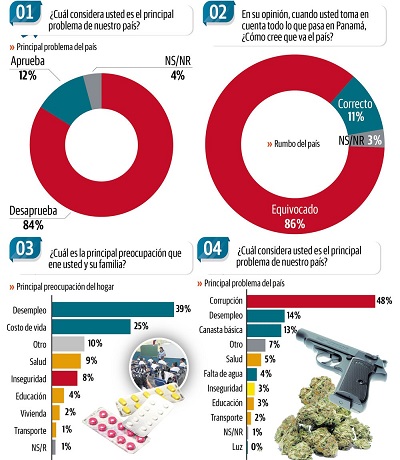 "A poco más de dos semanas para que los ciudadanos decidan con su voto la persona que será el nuevo presidente del país, el pueblo continúa enfrentando problemas de desempleo y alto costo de vida y culpando por, ello en gran medida, a la corrupción que se percibe está en las más altas esferas del gobierno actual", detalla el análisis gráfico de la firma encuestadora.
