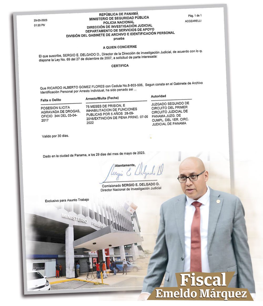 Se trata del abogado Ricardo Gómez Flores que en abril de 2017 fue juzgado por posesión ilícita agravada de drogas bajo el oficio 344 y condenado a 75 meses de prisión e inhabilitación de funciones públicas por 5 años terminados el 7 de septiembre de 2022.