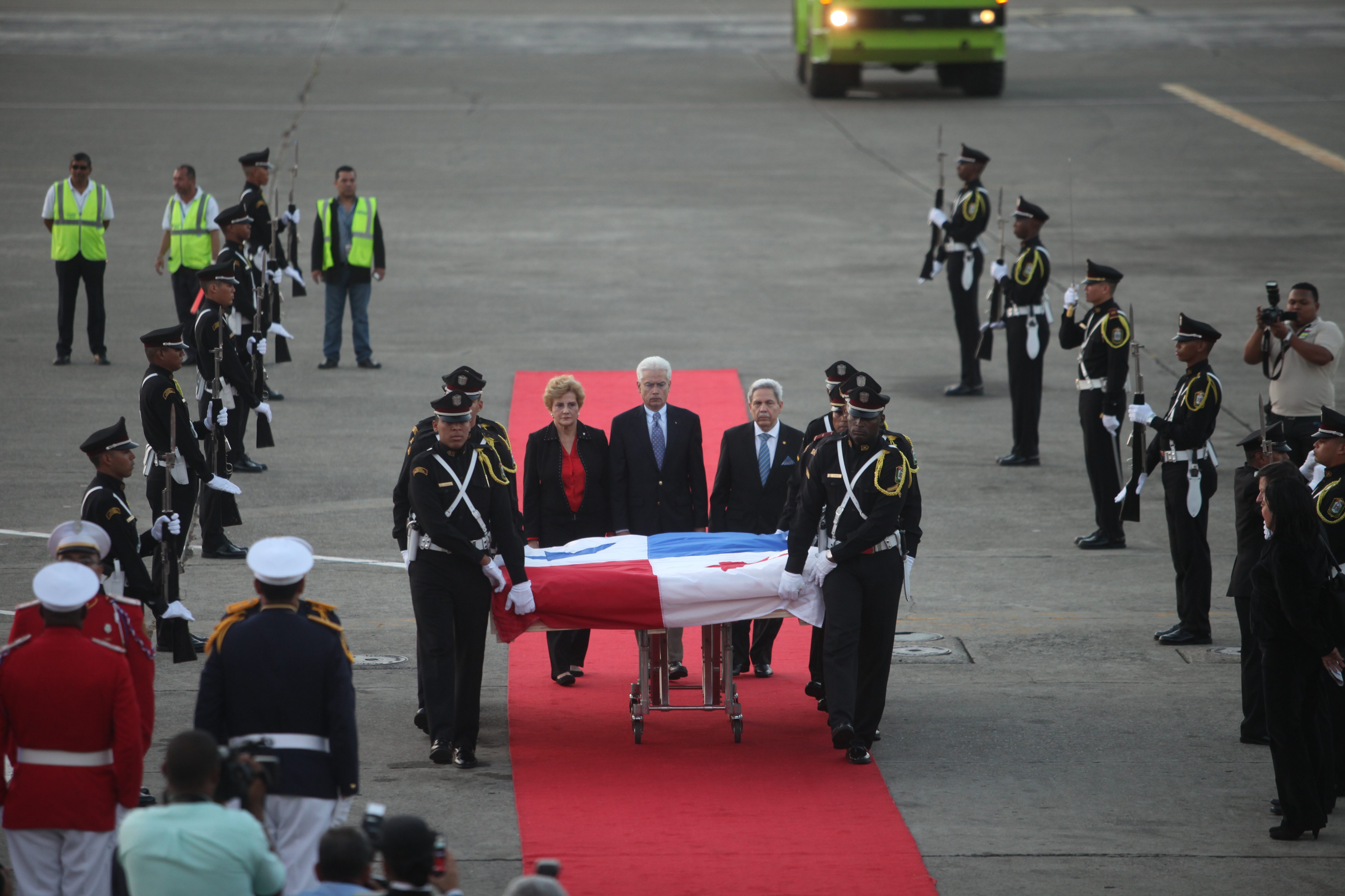 Una comitiva conformada por el ministro de Gobierno, Jorge Ricardo Fábrega, el presidente de la Asociación del Instituto Nacional Generación de 1964, Rimsky Sucre, y la presidenta de la Comisión Nacional de los Actos Conmemorativos del 9 de enero, Elsie Mckay, recibió la histórica bandera, que antes de su restauración reposaba en el aula máxima del Instituto Nacional.