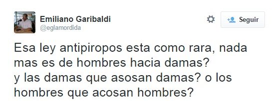 Uno de los usuarios de la red social comentó (...) "diputadas quieren meter presos a los caballeros que lancen piropos. ¡Busquen oficio!".