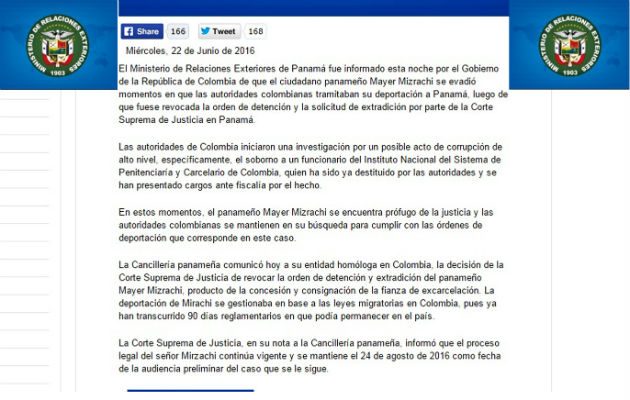 Farah Diva Urrutia, directora de Asuntos Jurídicos y Tratados de la Cancillería de Panamá, reaccionó a la lluvia de críticas surgidas en la opinión pública, por el comunicado del Ministerio de Relaciones Exteriores que califica a Mayer Mizrachi como “prófugo”, tras su salida de la cárcel La Picota, en Colombia,