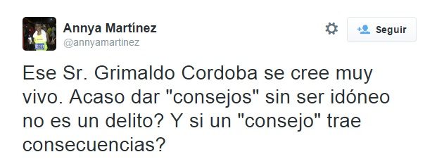 Otro cuestionó esos "consejos" que daba Córdoba sabiendo que no tenía la idoneidad para ejercer la profesión, porque se pregunta que ¿qué hubiese pasado si esos consejos traen consecuencias?.