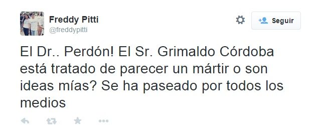 Caso Grimaldo Córdoba: Tuiteros repudian su actuar
