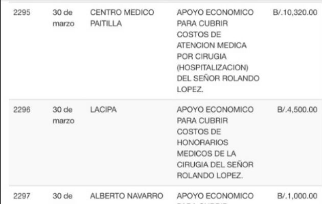 Se trata de registros donde se sustentan al menos cuatro desembolsos a nombre de López para realizar una cirugía.