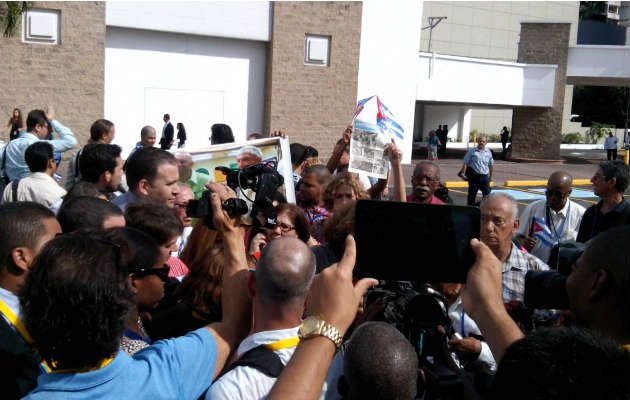 Los representantes cubanos, luego de protagonizar una manifestación a la entrada del salón Vasco Núnez de Balboa en demanda de que se les permitiera el ingreso a otra agrupación que no estaba acreditado, decidió abandonar el sitio.