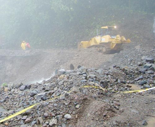 Deslizamientos de tierra afectan nuevamente la carretera Chiriquí-Bocas del Toro. El Ministerio de Obras Públicas inició los trabajos de reparación, pero es muy difícil por la neblina y los fuertes vientos.