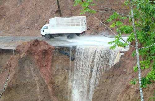 El mayor derrumbe se registró en el sector conocido como "Cabello de Ángel", donde la parte de carretera que fue reparada en el mes de noviembre volvió a colapsar, y dejó incomunicada esta provincia.