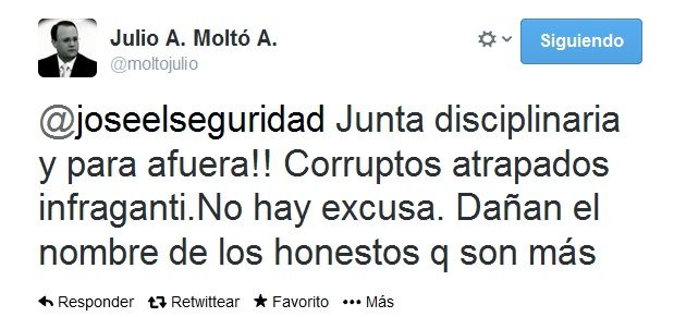 "Corruptos atrapados infraganti. No hay excusa. Dañan el nombre de los honestos q son más", escribió el director de la entidad en Twitter.