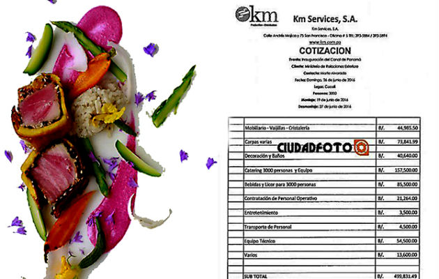 Una práctica segregacionista, que implementaron los norteamericanos en la antigua Zona del Canal, denominada "Gold Roll y Silver Roll", revivió el día de la inauguración de las nuevas esclusas. Aunque el hecho pasó desapercibido, varios días después, ha salido a flote un mar de críticas, tras el tránsito del Cosco Shipping Panama. Irónicamente, el menú de aquella fiesta, que fue elaborado en memoria de los centenares de afrodescendientes que dieron su vida en la construcción de la primera vía acuática (1904-1914), solo se sirvió en los platos de los invitados VIP. De los 4 millones de dólares que se utilizaron para la organización, el día de la apertura de las dos nuevas esclusas, 352 mil se destinaron a la ambrosía, el néctar que solo comían los dioses de la mitología griega. Sin embargo, no todos tuvieron el placer de degustar lo que por ejemplo, crujió entre los dientes y el paladar del Rey Juan Carlos I de España, tocayo del excelentísimo mandatario panameño Juan Carlos Varela. Fue una cena exclusiva, por no decir faraónica, para comensales de 62 delegaciones, en la que habían 11 jefes de Estado. El banquete fue preparado por la famosa chef local Cuquita Arias de Calvo, que contó con el apoyo de 135 cocineros y camareros. Las 300 personas que estaban dentro de una inmensa carpa refrigerada, comenzaron el viaje gastronómico con un mousse de mango, que fue servido a las 6:30 de la tarde. Acto seguido, se colocó sobre las mesas una receta elaborada con colas de langostino en salsa San Blas y un puré de pixbae. El plato fuerte, el ágape de la noche, llevaba un trozo de corvina y de langosta fresca, acompañadas con bearnesa de aguacate (crema), tajaditas de plátano, atún, arroz con coco cremoso y finos pétalos de flores boqueteñas (ver ilustración). Cabe mencionar, que sólo para el plato principal, se requirieron 400 peces y 300 langostas. La velada acabó cuando se sirvieron pedazos de chocolate bocatoreño, merengue gratinado, flan a la geisha, trufas (tuberculo) y granos de café. Todo este convite no habría sido cuestionado, por el hecho de que los panameños comunes, que no estaban invitados a la cena de gala, se conformaron con un muffin, un hot dog y papas fritas, envueltas en una bolsa plástica. Adicional al gran festín, el Estado pagó a la empresa Sal y Pimienta Arrocería, la suma de 100 mil dólares por 20,000 hot dogs y 40,000 bolsitas de papas fritas. También se conoció que la carpa usada en la cena de gala, tuvo un costo de 73 mil 800 dólares. Para la elegante cena, el Ministerio de Relaciones Exteriores, contrató a la empresa MK Services S.A., a través de una licitación abreviada. La misma fue inscrita en el Registro Público el 6 de agosto de 2015, durante la vigencia del actual gobierno.