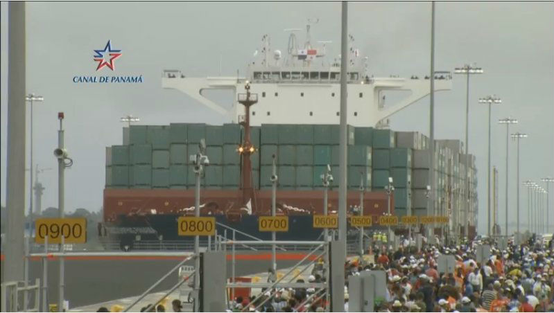 Tras culminar su paso por la esclusa de Agua Clara, en el sector Atlántico del Canal, el Cosco Shipping Panama, que hace casi dos semanas zarpó del puerto del Pireo en Grecia, se dirigirá hacia el Pacífico. Allí hará un tránsito por la nueva esclusa de Cocolí, al oeste del centro de la ciudad Panamá, en donde su paso será observado por otros miles de ciudadanos, unos 11 mandatarios del mundo y representaciones de poco más de 60 delegaciones invitadas.