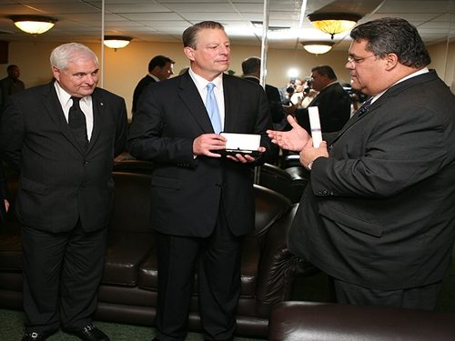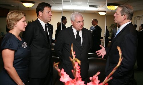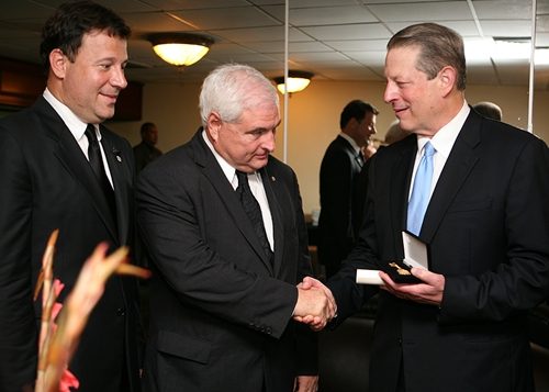 El presidente de la República, Ricardo Martinelli sostuvo una reunión con el ganador del Premio Nobel de la paz y ex vicepresidente de Estados Unidos, Al Gore, quien estuvo en Panamá dictando una conferencia sobre los efectos del cambio climático.