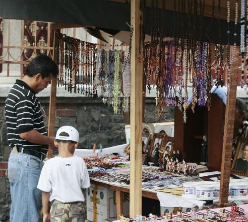 La actividad también es aprovechada por buhoneros que ofrecen diferentes artículos alusivos al santo.