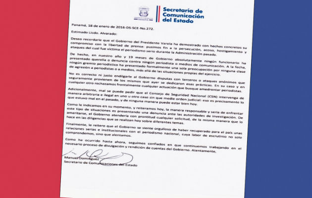 Here the official response of the Varela Government to the communicator Alvaro Alvarado , who has made public allegations of persecution and harassment.
