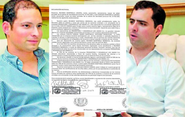 La declaración notarial desvincula a Promotora y Desarrollo Los Andes con las actividades personales y las operaciones bancarias de los hermanos Ricardo y Enrique Martinelli Linares.