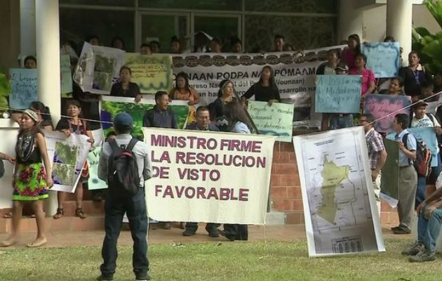 Luego de obstruir los accesos de entrada a la sede del Mininisterio de Ambiente, un grupo de indígenas de la etnia Wounaan exigieron al ministro de esta cartera, Emilio Sempris, firmar el visto bueno para que les otorguen títulos de tierras. Sempris alegó que esperan una respuesta de la Autoridad Nacional de Tierras (Anati) y apeló a que la paz sea todos los panameños y gestionar una mesa de diálogo. "Hace dos semanas solicitamos a la Anati que se emitiera notificaciones. No puedo sacar los expedientes fuera del ministerio porque es ilegal. Ya hemos emitido las consultas a la Dirección Nacional de Tierras Indígenas y Bienes Municipales de Anati", sostuvo Sempris. VEA TAMBIÉN: 'Muro de los corruptos' es levantado en la Asamblea Nacional Ante esto, los moradores señalaron que han pasado más de dos meses desde que solicitó la certificación de Mi Ambiente, pero no ha llegado. El pueblo indígena de la región Wounaan de Panamá Este (sector de Chimán) ha pedido el visto bueno al proceso de titulación de tierras, donde se buscabn beneficiar unos Son más 15 mil habitantes. "Estamos buscando nuestro derecho, y Sempris no ha querido firmar el visto favorable, sabemos que en nuestro derecho están las tierras colectivas", explicó el cacique indígena Elibardo Menchabe.