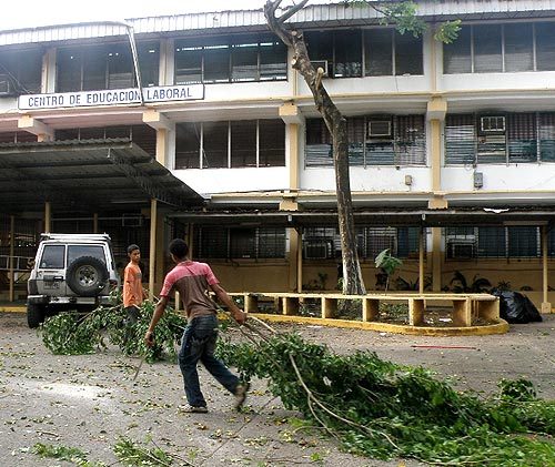 Los estudiantes del Instituto Comercial Panamá no pudieron iniciar sus clases ayer, ya que el plantel amaneció lleno de ramas de árboles, basura y con cadenas en las puertas principales.