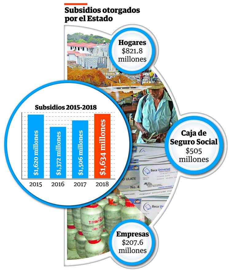 Los subsidios del Gobierno Central a los hogares, Caja de Seguro Social y empresas se dispararon a mil 634 millones de dólares en el último año de la administración de Juan Carlos Varela.