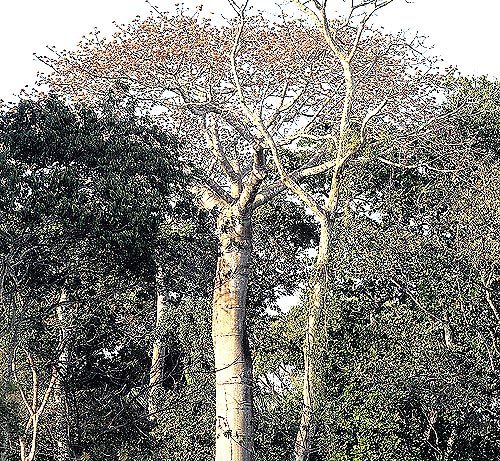 El Panamá (Sterculia apetala), deja caer sus hojas en la estación seca, pero le nacen nuevamente en la lluviosa.