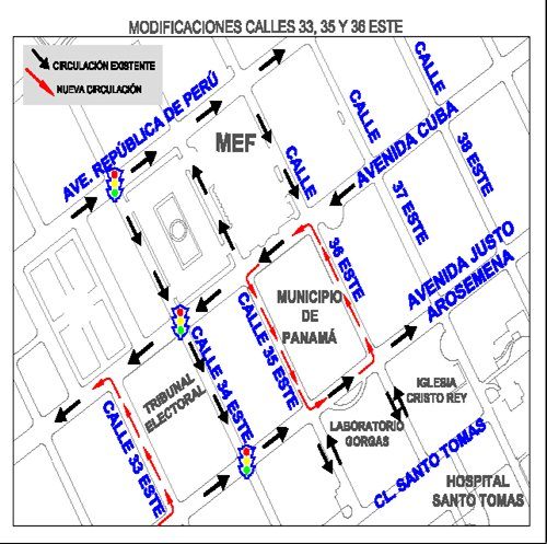 -En la Calle 36 se invierte el sentido actual de circulación, para que bajen 2 carriles hacia la Ave. Justo Arosemena (sentido opuesto al actual).