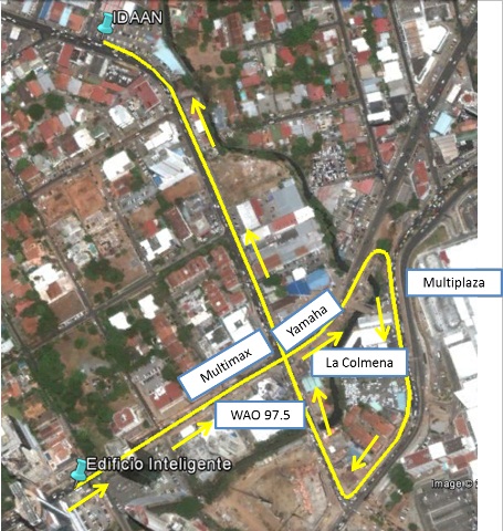 "Los buses con rutas de Vía España en sentido hacia el Norte y Este, una vez realizada la parada del Edificio Inteligente, tomarán la vía deprimida de Calle 50 y continuarán sobre esa calle para realizar el giro a la derecha en el nuevo acceso ubicado después del Centro Comercial La Colmena (donde se encuentra Kitaros) para tomar la Vía Israel y girar a la derecha en la rotonda hacia Vía Brasil para continuar el recorrido hacia la parada del IDAAN", detalla un comunicado de prensa.