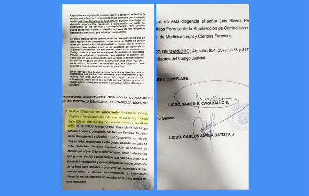 Mediante un comunicado oficial, la Procuraduría General de la Nación del Ministerio Público informó este martes “la diligencia de allanamiento, inspección ocular y registro en la sede de la firma forense Mossack Fonseca y demás filiales del grupo”. El comunicado aclaró que la diligencia está a cargo de la Fiscalía Segunda Contra la Delincuencia Organizada, y que se “desarrolla simultáneamente en el Data Center Internacional de la empresa telefónica que brinda soporte informático, en debida forma y sin ningún tipo de percance o impedimento”. La confirmación del allanamiento contradice la primera versión del abogado de esta firma, Elías Solano, quien más temprano en declaraciones a Acan-Efe negó que fuera un allanamiento, y explicó que se trataba solo de una "inspección ocular".